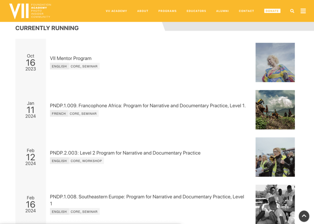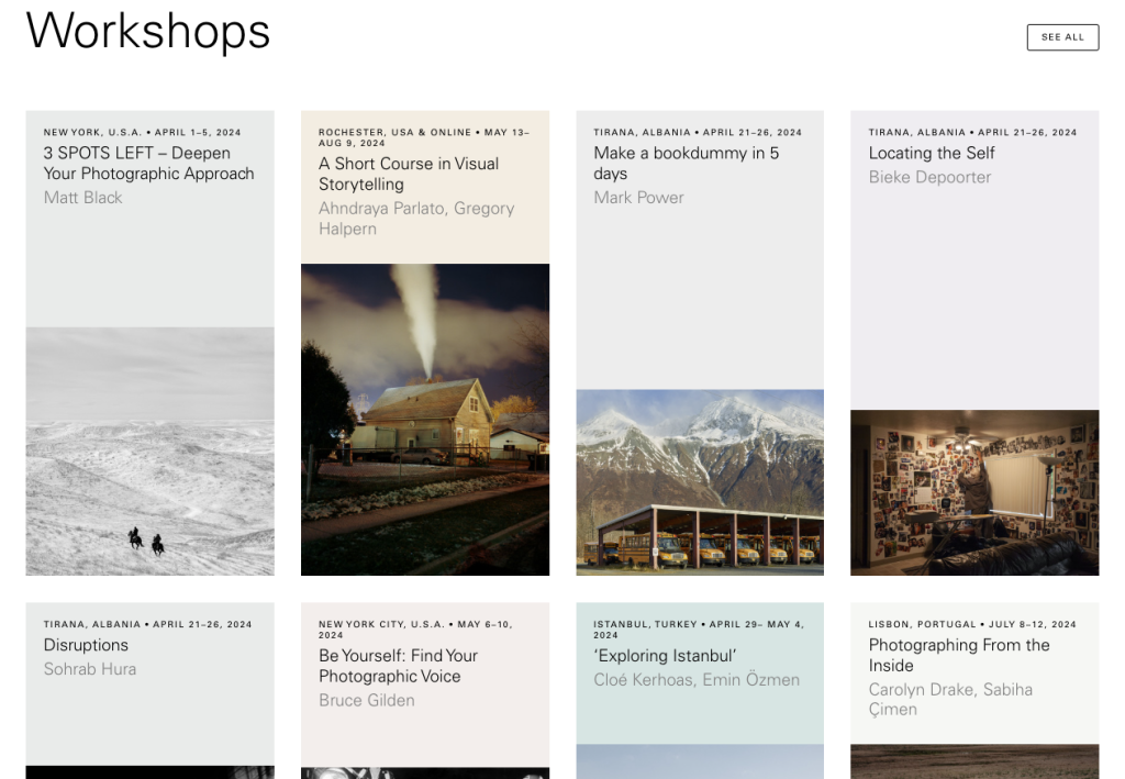 VII Photo Agency, known for its documentary photography, occasionally offers workshops and masterclasses led by its photographers. These workshops cover topics such as visual storytelling, editing, and the business of photography.