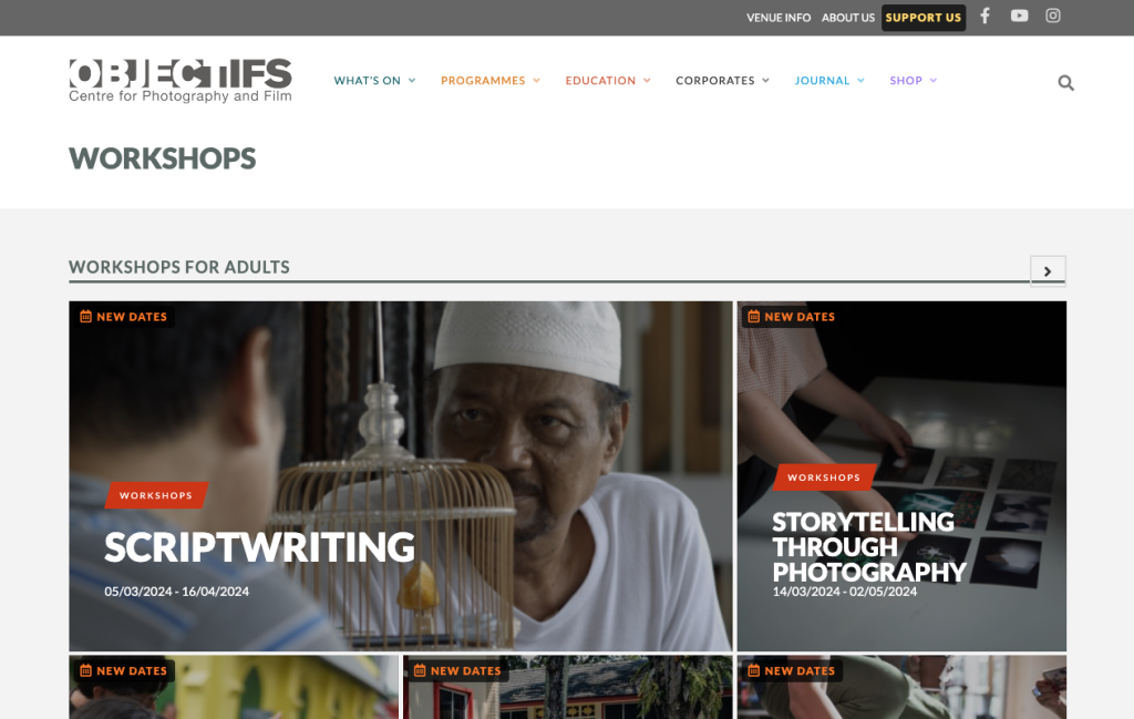 Objectifs, based in Singapore, offers various workshops, masterclasses, and programs focusing on documentary photography and visual storytelling. Led by experienced photographers and industry professionals, these workshops cover a wide range of topics, including storytelling techniques, documentary project development, and ethical considerations in photography. Objectifs also hosts exhibitions and events that provide opportunities for photographers to showcase their work and engage with the photography community.